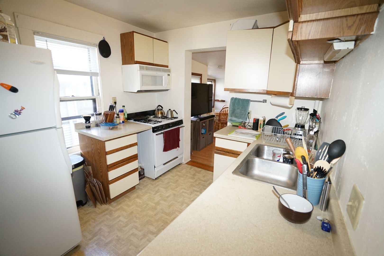 Heat, water, and gas are included; tenant pays electric. Off-street parking available for an additional fee.